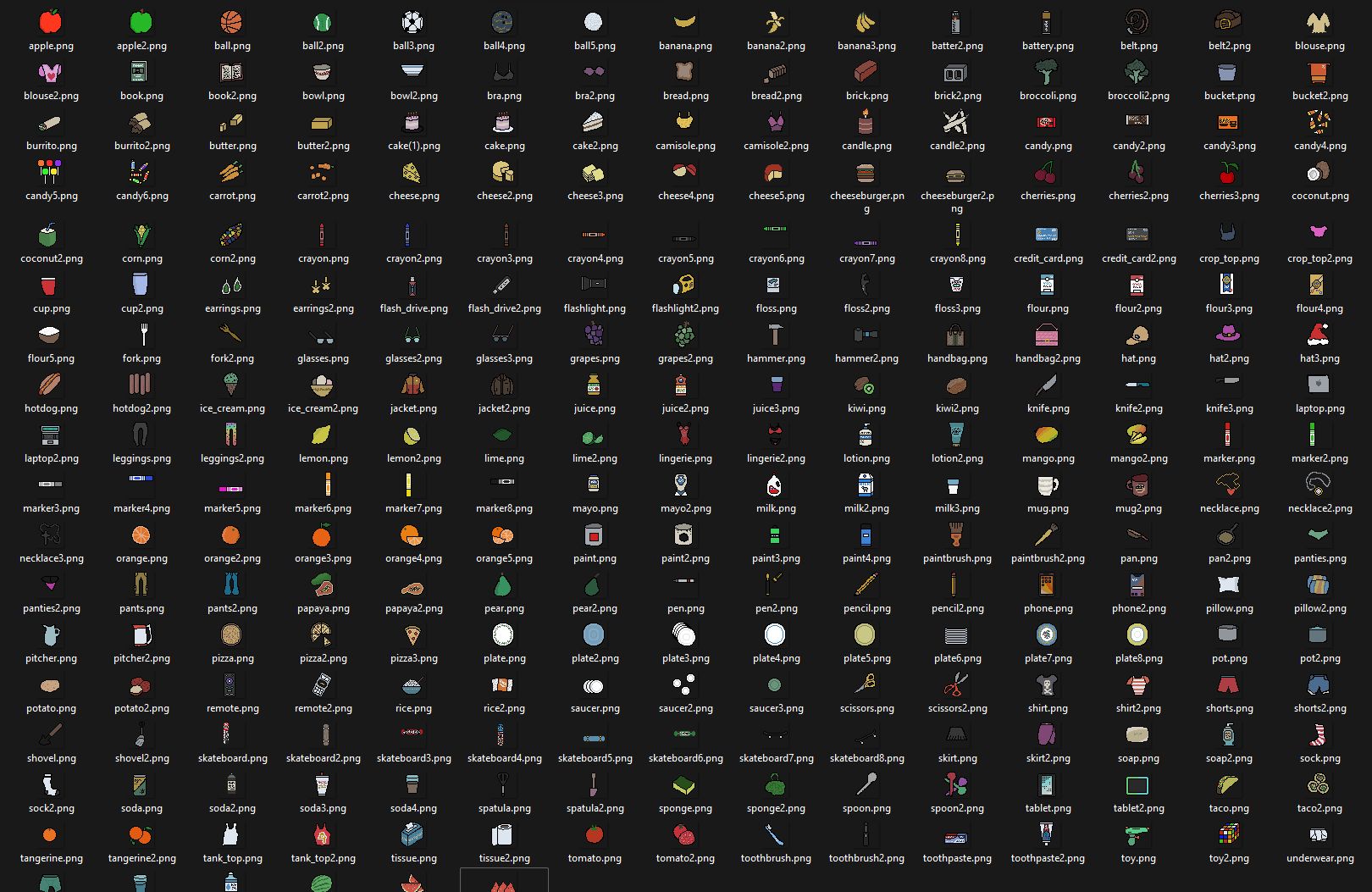 I’ve been drawing 32 x 32 pixel graphics for everything this whole time, and I’m definitely not experienced enough to draw something bigger with shading and lighting and gradient colors. So I looked at a bunch of references and started combining sketching. Then I imported to paint shop pro and pixelated the drawings to make them fit in better with the aesthetic of the game.